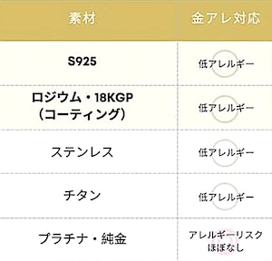 (※) 金属アレルギー対応の商品に関しまして