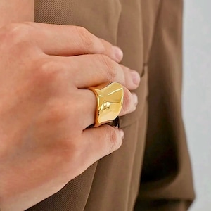 Flat & Wavy Gold Ring / 金属アレルギー対応