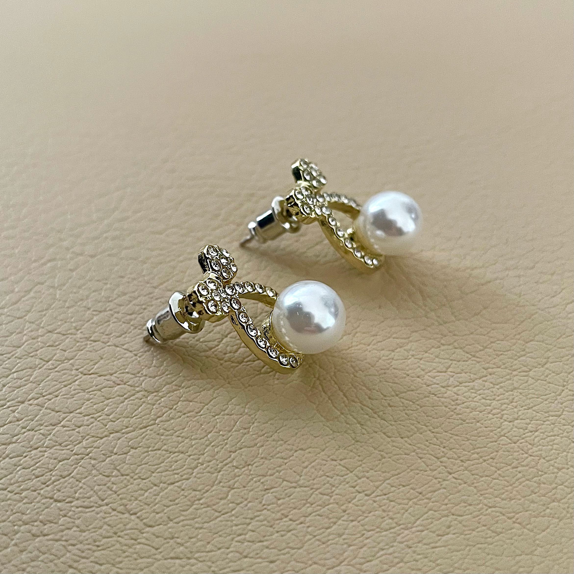 リボン & 人工パール ピアス / #P578