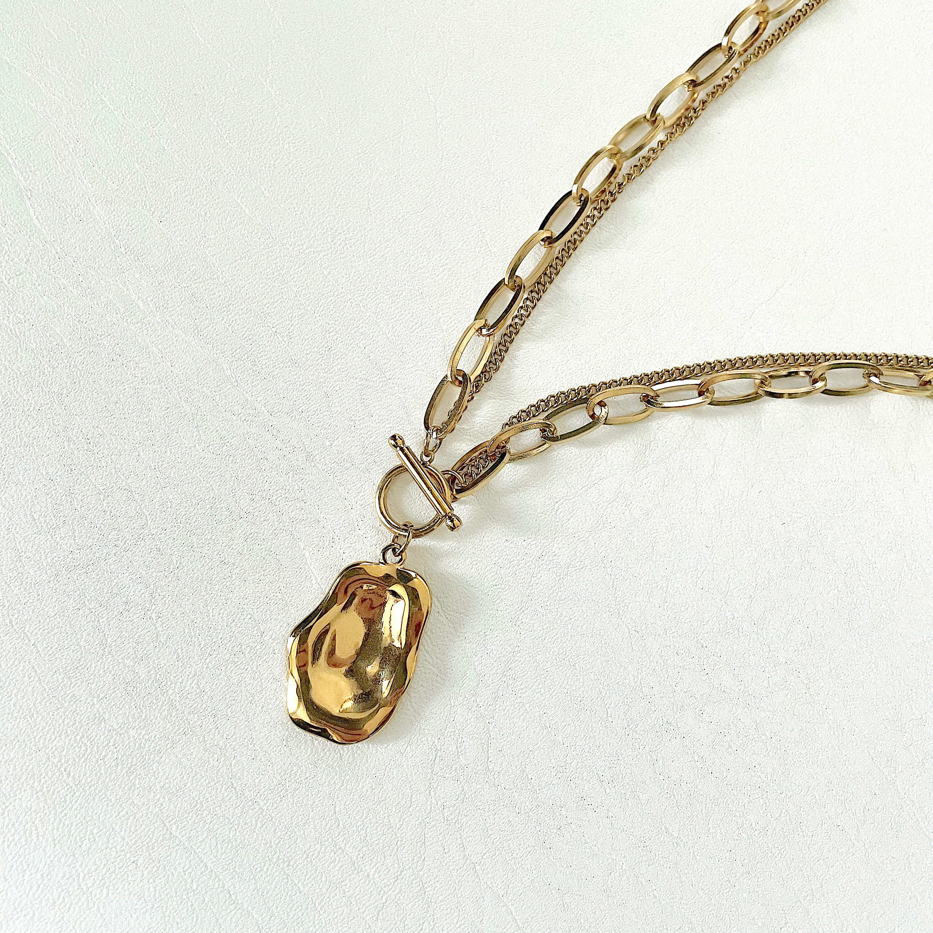 Plate & Mix-chain Necklace / 金属アレルギー対応