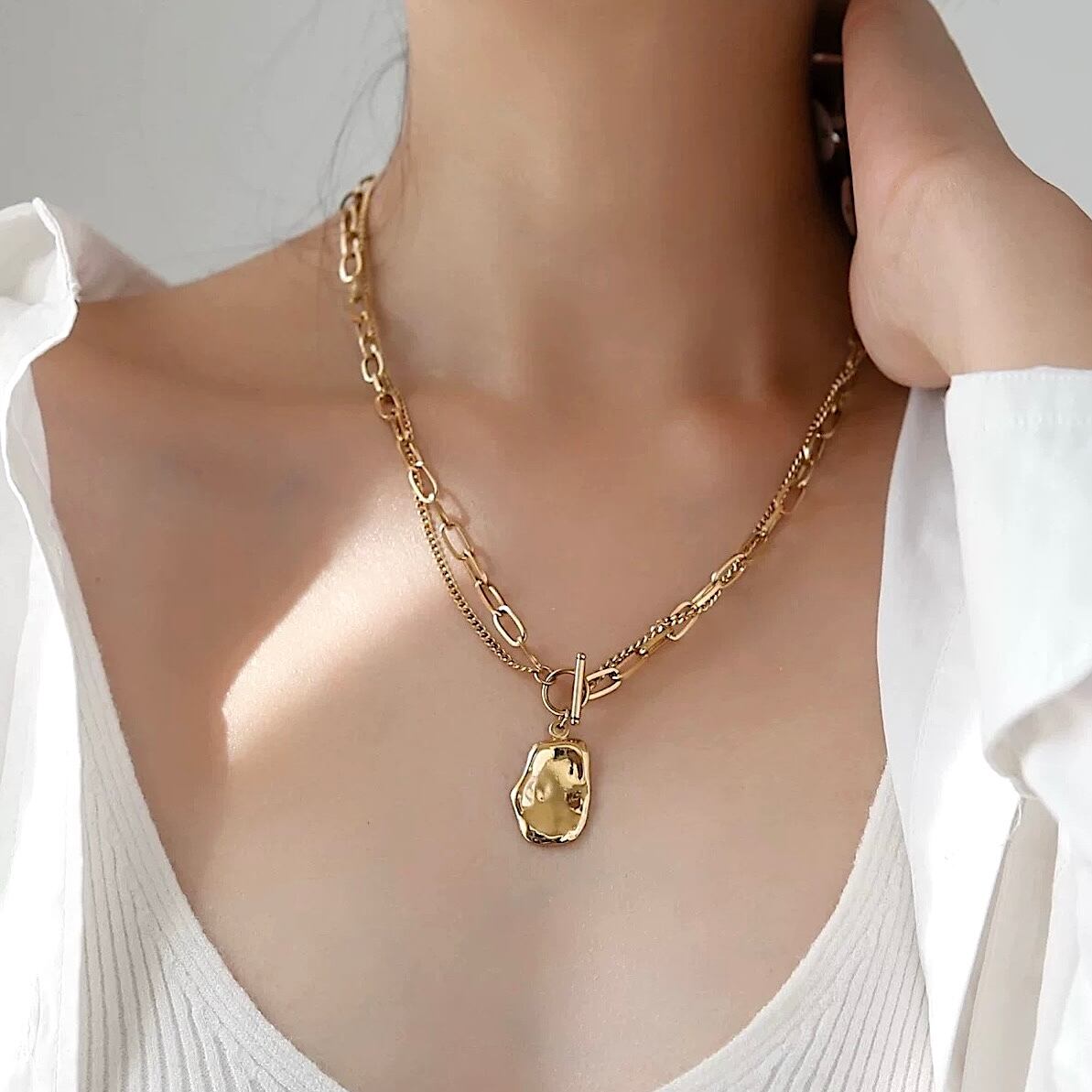 プレート & ミックスチェーン ネックレス