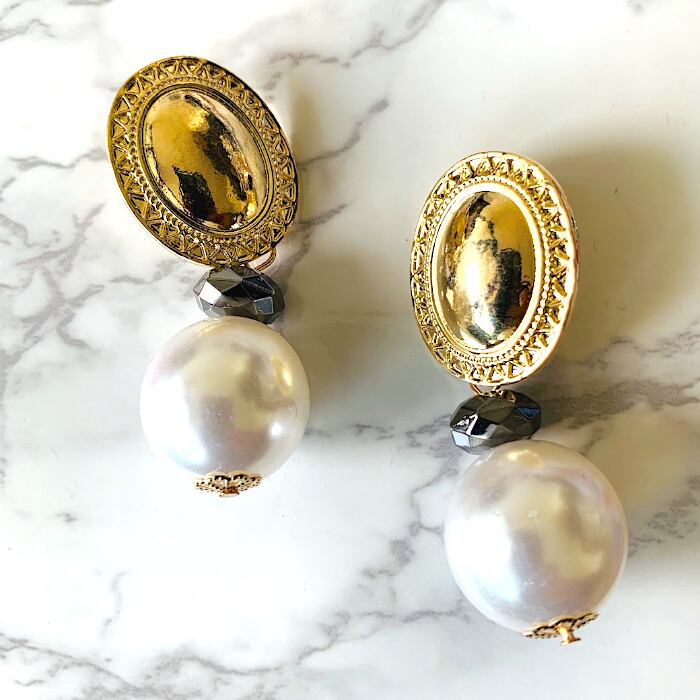 大振りパールが印象的なピアスです。